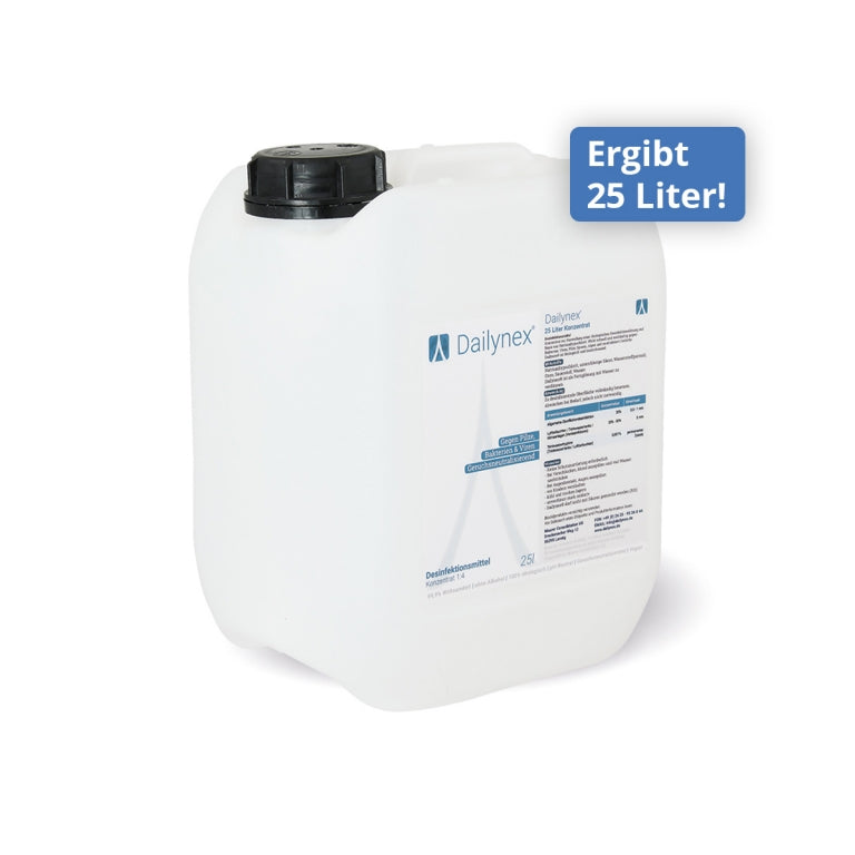 Mit unserem 5 Liter Kanister für den professionellen Anwendungsbereich, erhältst du bis zu 25 Liter gebrauchsfertige Desinfektionslösung, nachdem du das Konzentrat* mit Wasser verdünnt hast. Die kompakten DIN-Norm Kanister lassen sich bei Bedarf praktisch stapeln, sodass Du stets eine ausreichende Menge an Desinfektionsmittel vorrätig hast.